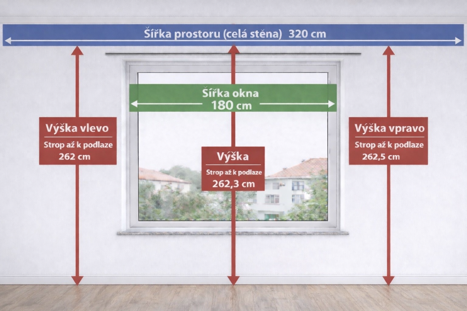 S těmito rozměry se stačí objednat k nám na schůzku do šicí dílny, kde si pohodlně vyberete látky podle svého vkusu. Ideální je, když si prostor také nafotíte – pomůže nám to lépe navrhnout vhodné řešení přesně pro váš interiér. Společně doladíme detaily, typ uchycení i celkový vzhled, aby výsledek perfektně seděl.